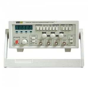 Прибор обеспечивает формирование сигналов прямоугольной, треугольной, синусоидальной формы, а также импульсов TTL уровней в диапазоне частот от 0.06 Гц до 6 МГц.