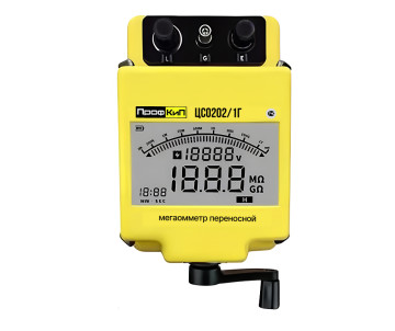 | Мегаомметры переносные ПрофКиП ЦС0202/1Г предназначены для измерения электрического сопротивления постоянного тока при проверке параметров изоляции. Мегаомметры применяются для оперативного контроля сопротивления и параметров изоляции, при настройке, испытаниях и обслуживании промышленного оборудования и электросетей, оснащения мастерских, предприятий и организаций, обслуживающих электросети. Особенностью мегаомметров ПрофКиП ЦС0202/1Г является отсутствие необходимости использовать стороннее питание в виде гальванических элементов, батарей аккумуляторов и т д, так как питание электронной схемы и элементов ЖК дисплея осуществляется от генератора с механическим приводом. Приборы выпускаются в качестве современной замены мегаомметров серий М4100, ЭСО202, ЦС0202 украинского производства |